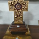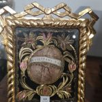 Il y a aussi une paire de monstrances reliquaires italiennes XVIIIe (lot 126), un buste reliquaire (lot 131), des reliques de Saint-Pie X (lots 128 et 155 – ce dernier est un morceau de sa soutane), des souvenirs du pape Pie IX (lot 472), une très grande chapelle-reliquaire (77x77x65 cm, lot 158), ou encore un reliquaire-monstrance avec une ampoule, travail italien du XVIIe (lot 166).