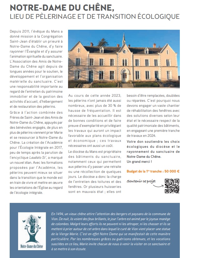 Le journal des travaux du diocèse du Mans vient de sortir. On y apprend que 200.000 euros ont été investis pour réaménager les presbytères de la Ferté-Bernard et de Mayet, 14.000 euros sont prévus pour la sonorisation de l’église de Sablé-sur-Sarthe – en partie couverts par un legs à cette intention, 50.000 euros pour la première tranche du remplacement des huisseries du bâtiment qui abrite le prieuré de la communauté saint Jean à Notre-Dame du Chêne ou encore 5500 euros pour le grand entretien de l’orgue de l’église saint Paul de Bellevue.
