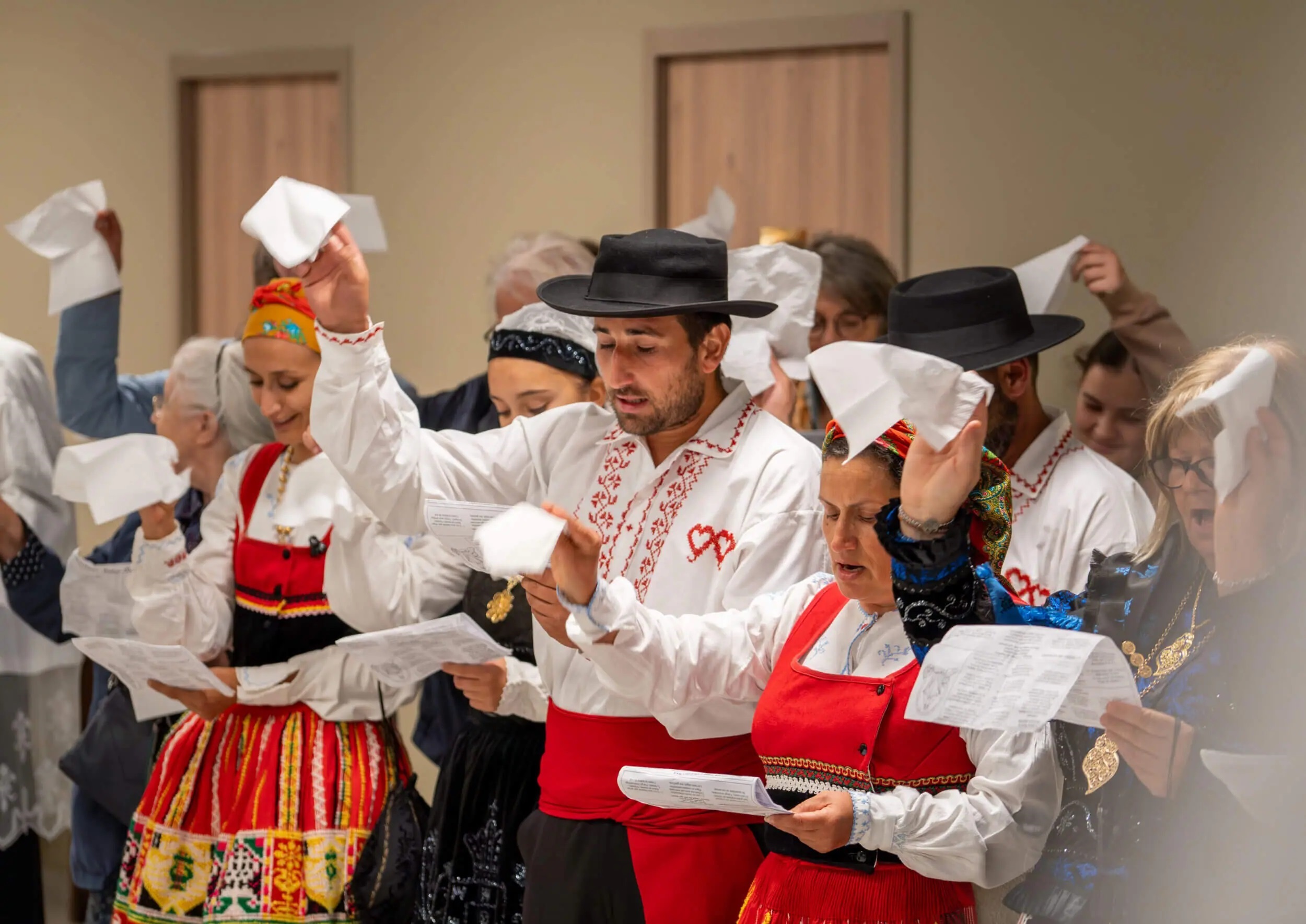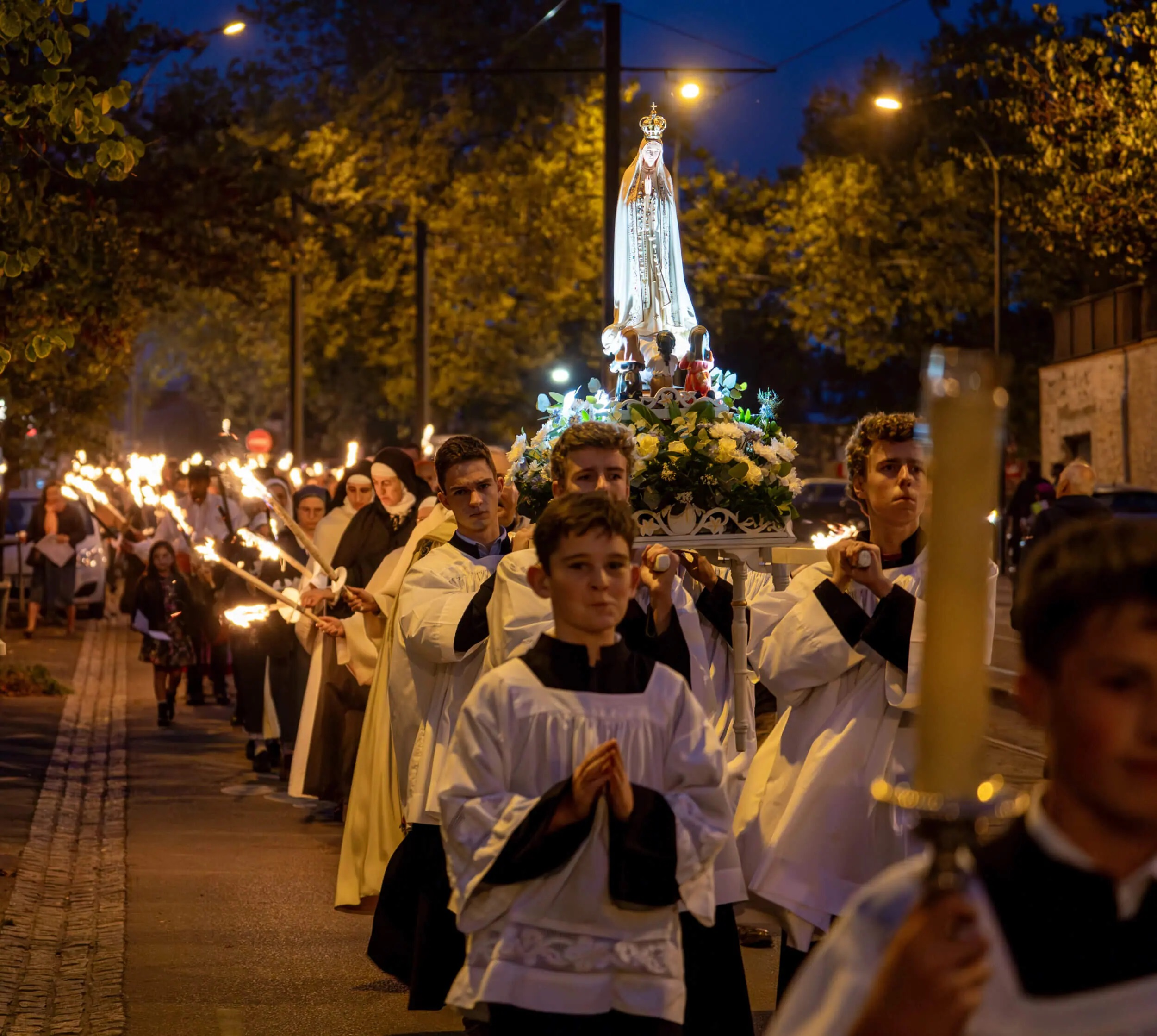 De nombreux membres de la communauté portugaise de Nantes s’y sont joints en costume traditionnel et ont participé avec ferveur à la cérémonie, animant même certains cantiques en langue portugaise. A la fin fut chanté l’émouvant Chant de l’adieu à la Vierge en agitant des mouchoirs blancs !