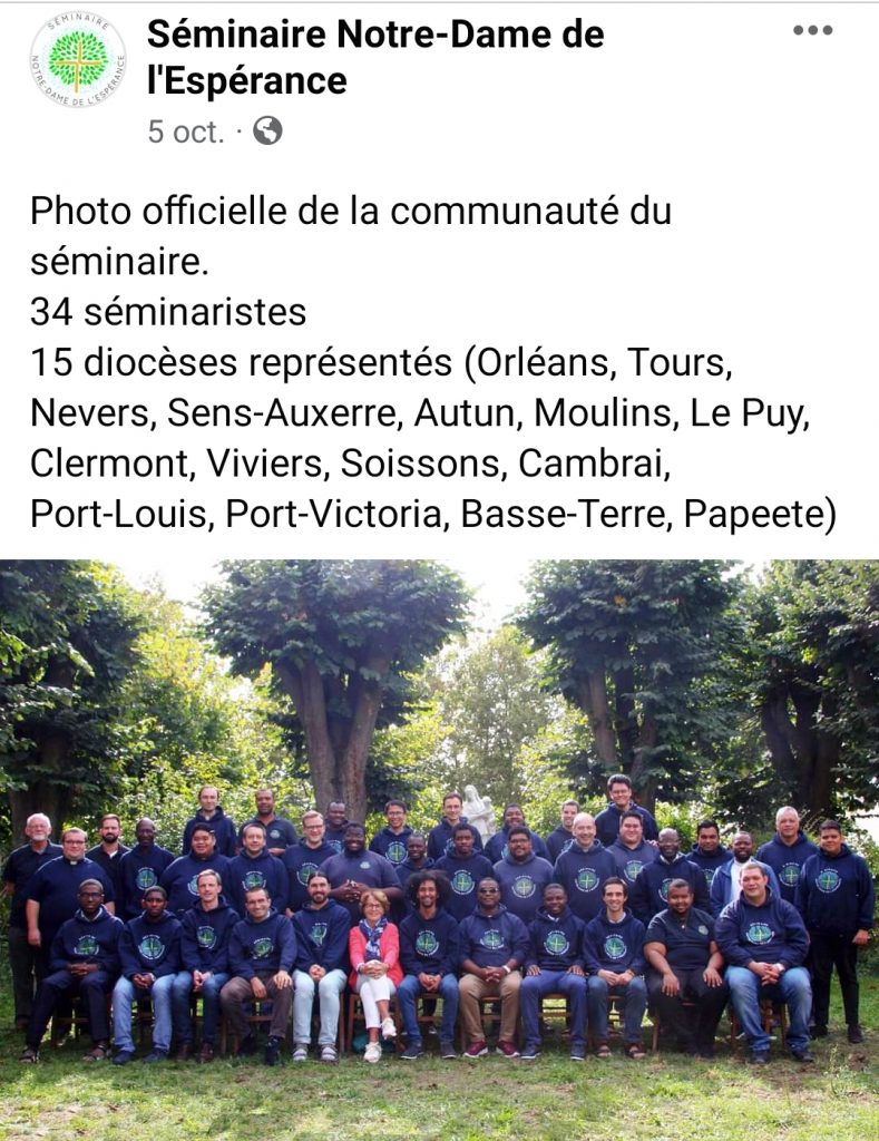 Le séminaire interdiocésain d’Orléans, géré par les eudistes, et quelque peu tributaire de leurs errements, a fait sa photo de rentrée 2023 avec 34 séminaristes de 15 diocèses différents, dont deux qui ne sont pas français (Port-Louis sur l’ile Maurice et Port-Victoria aux Seychelles). Outre une dizaine de diocèses français du Val de Loire, de la Bourgogne et de l’Auvergne – mais aussi Viviers, Soissons ou encore Cambrai, il justifie néanmoins son surnom de séminaire intercontinental par la présence de ces séminaristes d’archipels de l’Océan Indien, mais aussi de Papeete (Tahiti) et de Basse-Terre (Guadeloupe).