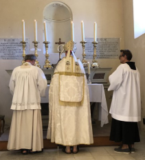 Malgré un agenda chargé, Mgr Bustillo s’est rendu le samedi 12 août, à la chapelle Notre-Dame de Lorette, pour consacrer le nouvel autel. La table avait été préparée quelques jours plus tôt par un graveur. Il a marqué la pierre de cinq croix, symbolisant les cinq plaies du Christ, et a creusé une cavité en son milieu formant ainsi le tombeau où seront déposées les reliques des saints.