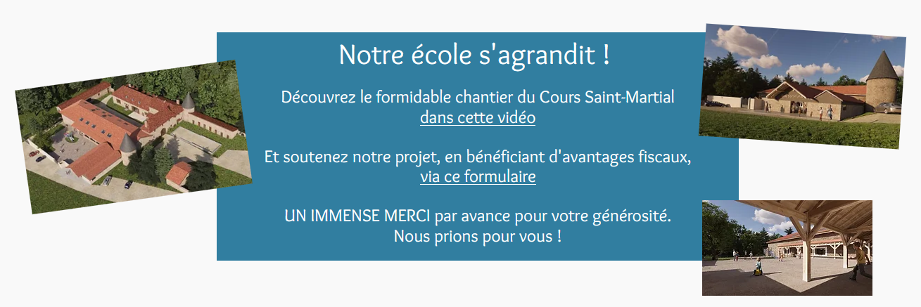 Avec le concours d’un groupe de parents, le Cours Saint-Martial (Limoges) a ouvert ses portes en septembre 2017. Le Cours vient d’ouvrir un collège en septembre 2023 (Ouverture de la classe de 5è en septembre 2024) et va déménager dans de nouveaux locaux dans quelques mois. L’établissement compte cette année 60 élèves. L’aumônerie est assurée par un prêtre de l’Institut du Christ Roi.