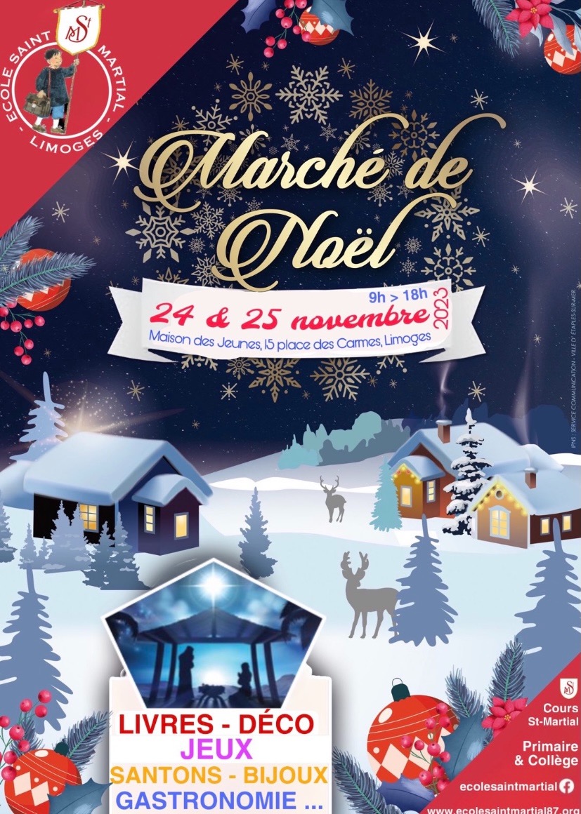 L’Ecole vous invite à son Marché de Noël les 24 et 25 novembre à la Maison des Jeunes (15 place des Carmes à Limoges) :