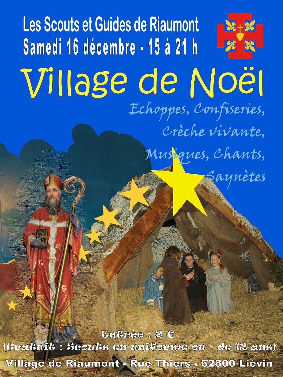 Les frères et les pères de l’Institut de la Sainte Croix de Riaumont, et, les Guides et Scouts de Riaumont nous invite à leur village de Noël le samedi 16 décembre 2023 à Riaumont (Liévin) de 15h à 21h.