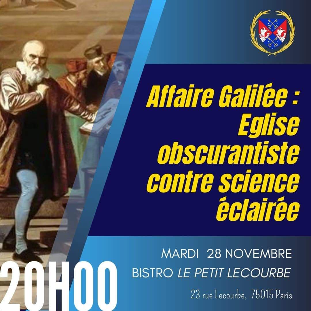 – Le prochain Caté Calé se tient ce mardi 28 novembre à Paris sur le thème : « Affaire Galilée ! Eglise obscurantiste contre science éclairée ».