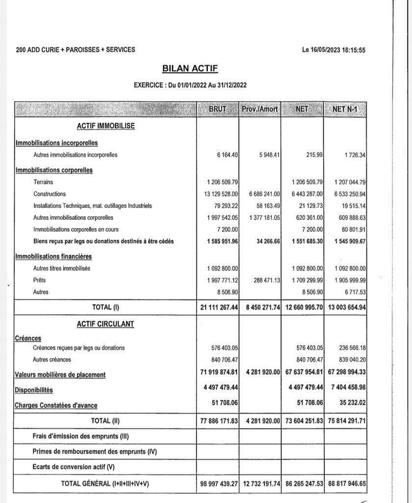 - L’immobilier vient ensuite (13.1 millions d’euros), mais le commissaire aux comptes attire l’attention sur la « non valorisation à l’actif du bilan des biens immobiliers des paroisses« , nombreux dans cette terre qui a été jusqu’au Concile très catholique et pratiquante. Du reste, le diocèse n’a pas toujours été exemplaire dans la valorisation dudit immobilier.