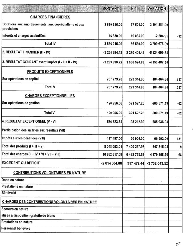 Une analyse plus poussée des comptes 2022 et 2021 indiqués pour mémoire permet de faire, même s’il manque l’intégralité du rapport des commissaires aux comptes, les constatations suivantes :