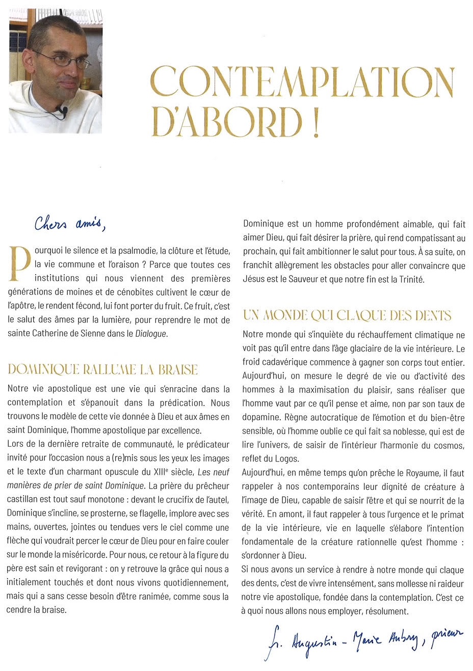Le RP Augustin-Marie Aubry, prieur de la Fraternité, invite à la contemplation dans le silence pour développer davantage notre vie intérieure.