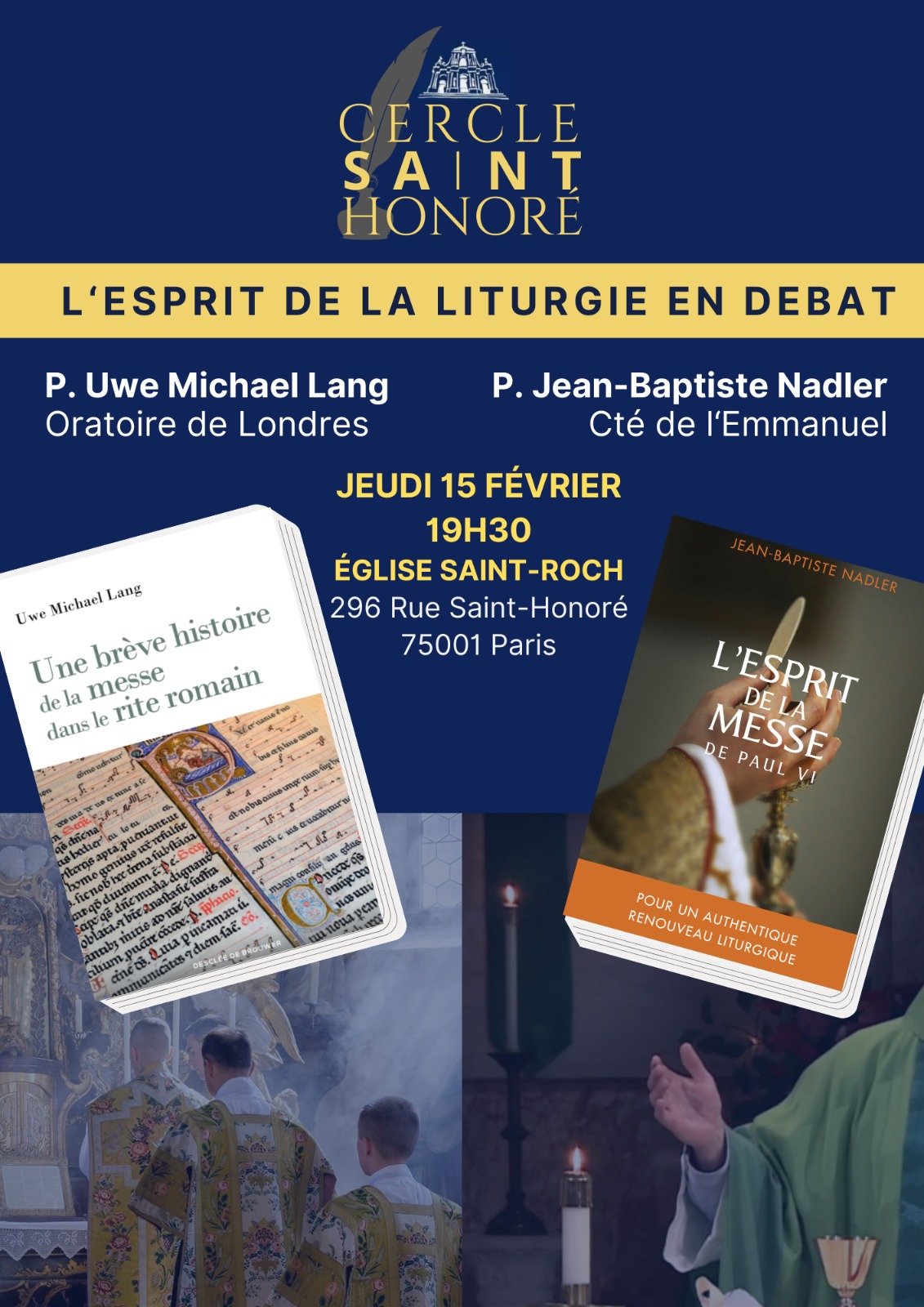 Le Cercle Saint Honoré (Paroisse Saint-Roch – Paris) propose une conférence sur l’esprit de la liturgie par le Père UWE Michael Lang (Oratoire de Londres) et l’abbé Jean-Baptiste Nadler (Communauté de l’Emmanuel) :