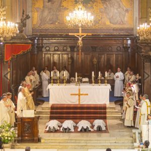 Je rejoins tous les prêtres, les diacres et les séminaristes pour qui cette ordination revêt une importance particulière ; sans vous oublier, vous tous, les fidèles du Diocèse, qui recevez les prêtres et les diacres comme vos serviteurs, pour grandir sur le chemin de la vie chrétienne et accueillir le mystère du Salut en notre Seigneur Jésus, mort et ressuscité. Je vous remercie tous d’être présents, aux côtés des ministres ordonnés, dans la vie de vos paroisses, pour porter ensemble la mission. Nous sommes tous appelés à grandir dans la confiance mutuelle, pour servir ensemble l’Église communion, selon la vocation qui est la nôtre.