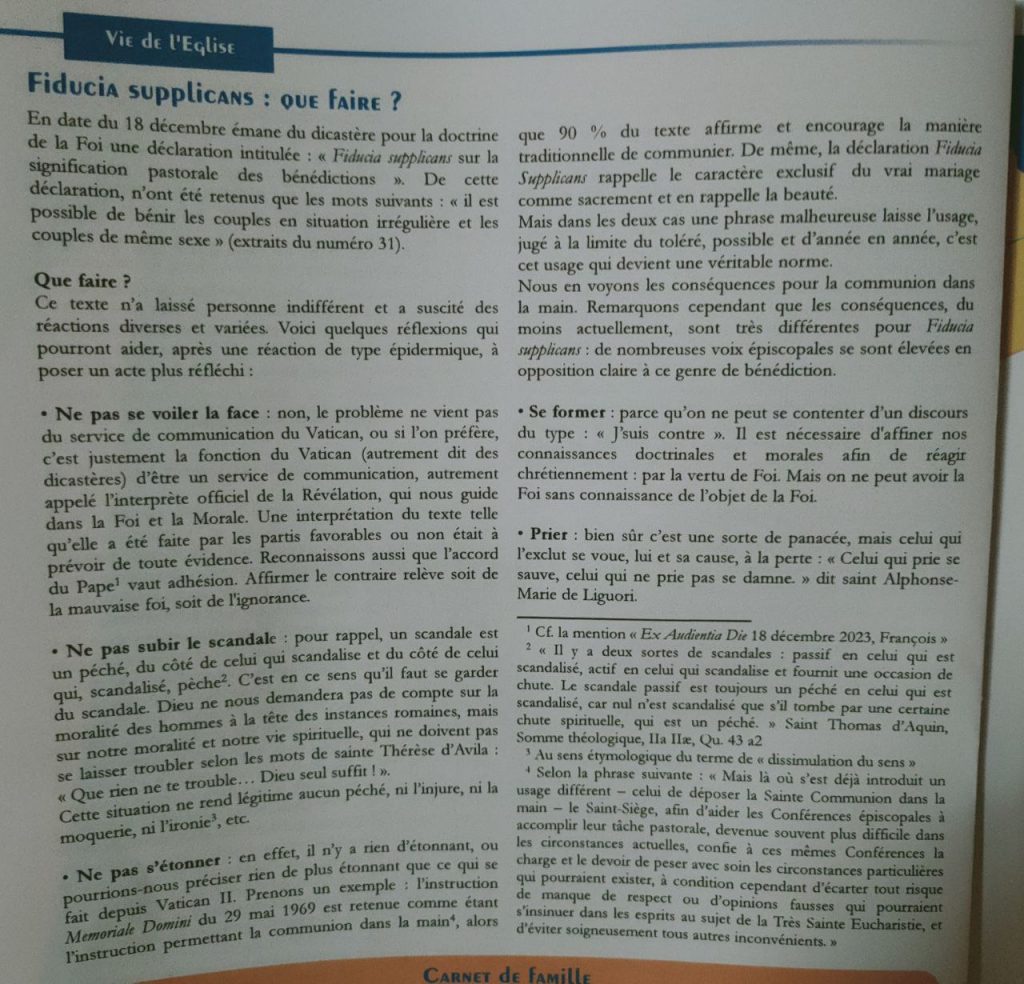 Fiducia Supplicans : que faire ? (Voix des Clochers, bulletin du prieuré de la FSSPX à Bergerac)