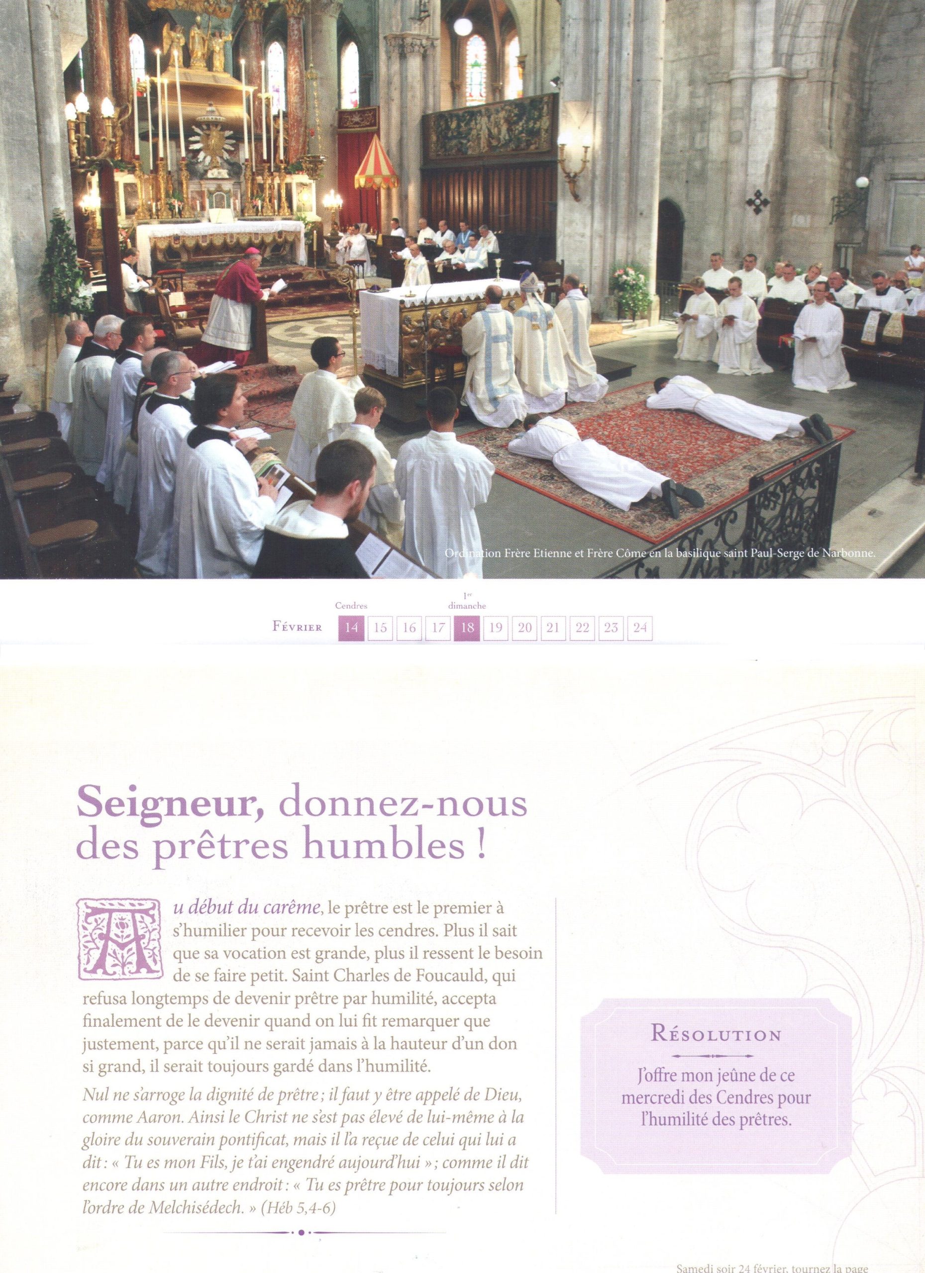 Comme ses dernières années, les Chanoines Réguliers de la Mère de Dieu (Abbaye de Lagrasse) ont publié de Carême avec quelques pensées spirituelles du Pape émérite Benoît XVI et quelques bonnes résolutions jusqu’à la fête du Sacré-Coeur.