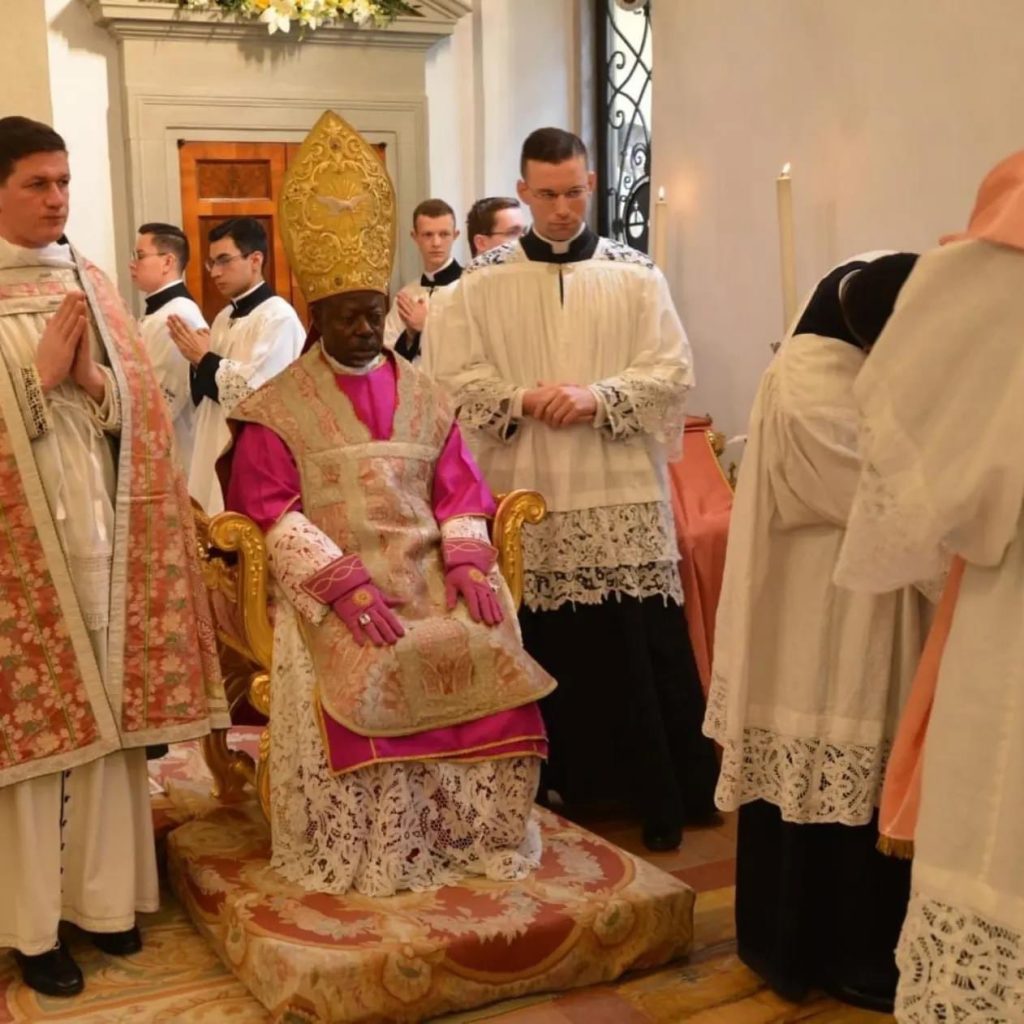 Mgr Matthieu Madega, évêque de Mouila, a ainsi célébré la messe pontificale au Faldstool en présence de tous les évêques gabonais. Le sermon a été prononcé par Mgr Ephrem Ndjoni de Franceville. Les liens entre le Gabon et l’Institut du Christ Roi sont anciens et particulièrement forts.