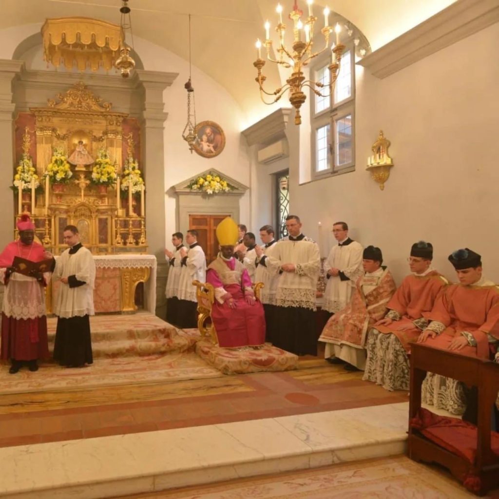 Comme Riposte catholique l’avait indiqué, les évêques du Gabon se sont rendus au séminaire de l’Institut du Christ Roi, à Gricigliano (Italie). Les évêques ont ainsi célébré la messe du dimanche de Laetare.