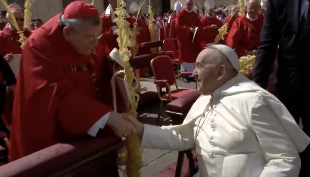 Le cardinal Raymond Burke était présent parmi les 30 cardinaux qui ont participé à la procession des Rameaux du dimanche dernier sur la place Saint-Pierre de Rome. Le pape François a même pu saluer brièvement le cardinal Burke. Pour rappel, le pape avait eu un entretien avec le cardinal le 29 décembre dernier.