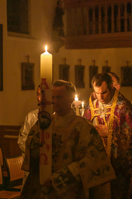 Les séminaristes du séminaire Saint-Pierre de Wigratzbad (FSSP) ont célébré la Vigile pascale. La semaine sainte s’achève ainsi avec la plus importante veillée de l’année liturgique. Il y a une semaine, les séminaristes célébraient le dimanche des Rameaux.
