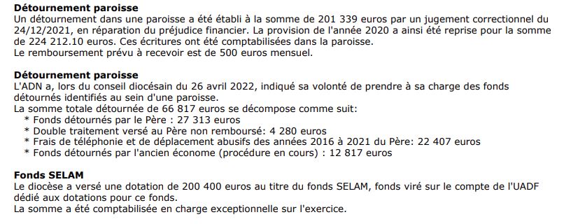 Les comptes 2021 du diocèse de Nice, publiés en 2022, nous apprennent que des détournements de fonds ont eu lieu dans deux paroisses, dans deux affaires distinctes :