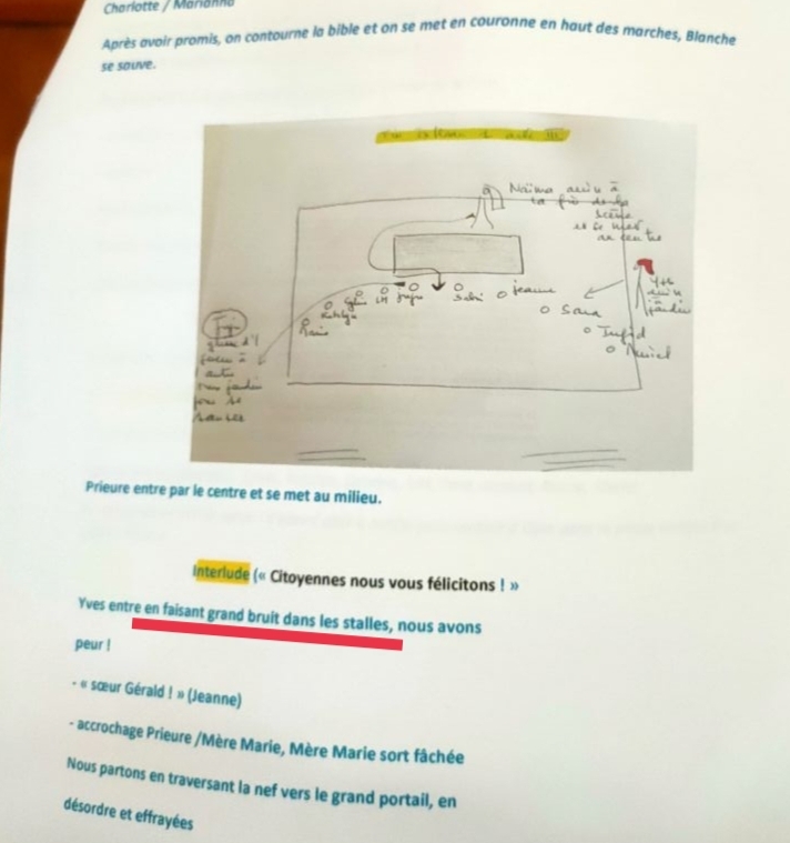La feuille de route des artistes – qui indique scène par scène, tableau par tableau, que faire et où se placer mentionne bien le présence de l’autel, son emplacement y est défini comme une « estrade« .