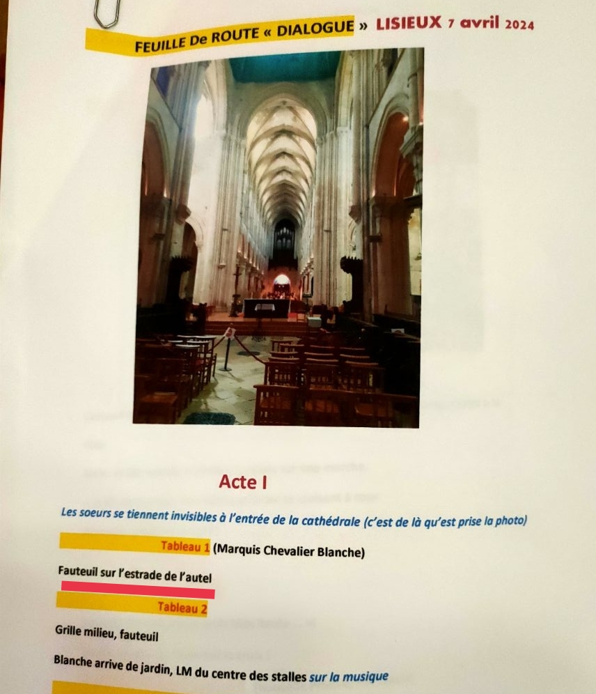Tout cela est on ne peut plus clair. Par ailleurs les dimensions imposantes de la cathédrale de Lisieux – 110 mètres de long, 30 de large – permettent aux artistes de se mettre ailleurs que dans le choeur. Et la ville compte une ancienne église, désaffectée, de grande taille, servant à diverses manifestations culturelles – un lieu qui semble nettement plus adapté à un opéra que l’autel d’une cathédrale.