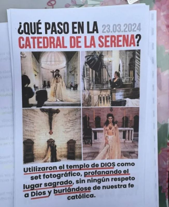 Le Diario rapporte que ces photos ont choqué de nombreux fidèles, qui n’ont pas hésité à exprimer leur peine et leur indignation à leur archevêque pendant la messe des Rameaux dans cette même cathédrale : » la production a été réalisée par une société de production et comprenait du maquillage et des photographies au [niveau du] Tabernacle, le lieu le plus sacré de la région. Tout aurait été réalisé ce samedi, juste avant la Semaine Sainte, et avec la représentation du Sacré-Cœur de Jésus sur la poitrine du mannequin Rayén Villavicencio. Quoi qu’il en soit, ce qui s’est passé a provoqué l’indignation des fidèles qui n’ont pas hésité à exprimer leur malaise à la plus haute autorité de l’Église catholique de la région de Coquimbo, Mgr René Rebolledo. Des tracts ont même été distribués, affirmant que les acteurs de la production « utilisaient le temple de Dieu comme décor photographique, profanant le lieu sacré, sans aucun respect pour Dieu et se moquant de notre foi catholique ».