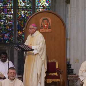 Ce soir, nous sommes rassemblés avec vos pasteurs qui vont renouveler leur promesse d’ordination, nous fêtons nos frères prêtres jubilaires, je pense aussi à l’abbé Lorentz avec ses 102 ans, je n’oublie pas votre ancien évêque, François qui est venu ce jour. J’exprime ma fraternité et ma gratitude aux 46 prêtres du diocèse dont 20 en poste fort. Tous veulent témoigner de leur joie de croire et de servir le Peuple qui est à Verdun. Avec eux, dans la foi, Église de Verdun, nous sommes heureux de vivre notre Baptême et la mission reçue et confiée à chacun.