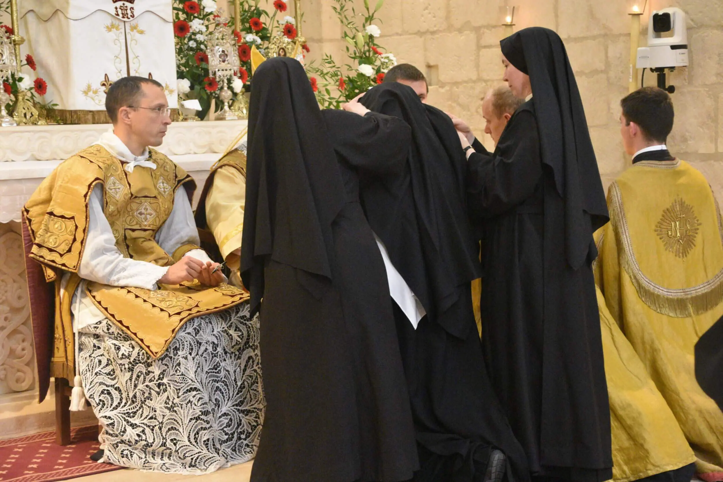 La veille, dimanche in albis, Mgr Alfonso de Galarreta avait présidé une cérémonie de prise d’habit (5 soeurs), de voeux temproaire (3 soeurs) et de voeux perpétuels (5 soeurs).