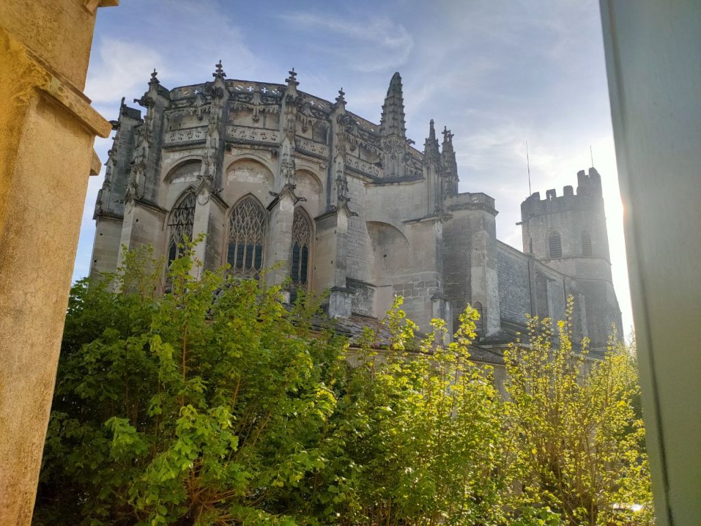 Entre l’entrée de la maison diocésaine (la porte avec la croix à gauche) et la cathédrale, 500 mètres à peine – c’est la 2e tour au fond.