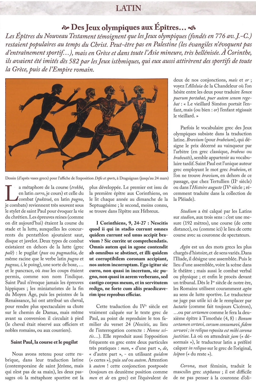 Signalons notamment un dossier consacré au projet ‘Repertorium’ qui veut rassembler l’ensemble du patrimoine musicale de l’Eglise en lien avec l’abbaye de Solesme, et un autre article consacré aux jeux olympiques… dont on trouve déjà des mentions dans certains épitres :