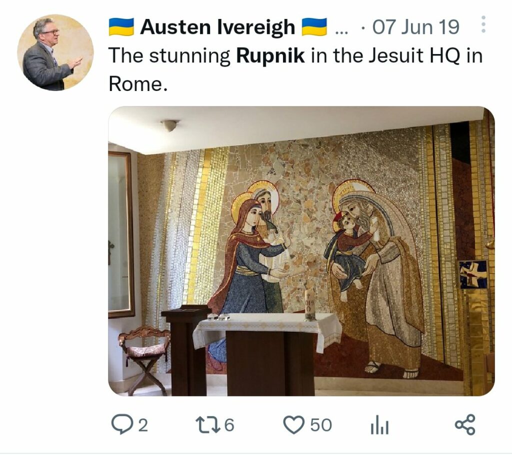 Pour rappel, ce tweet qui qualifie une œuvre de Marko Rupnik de « surprenante »: