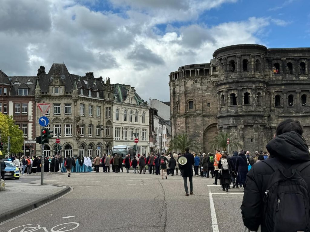 Dimanche dernier, l’Institut du Christ-Roi Souverain Prêtre (ICRSP) organisait une procession dans la ville de Trèves en direction de la cathédrale après la célébration d’une messe par les chanoines de l’Institut en l’église saint-Martin.