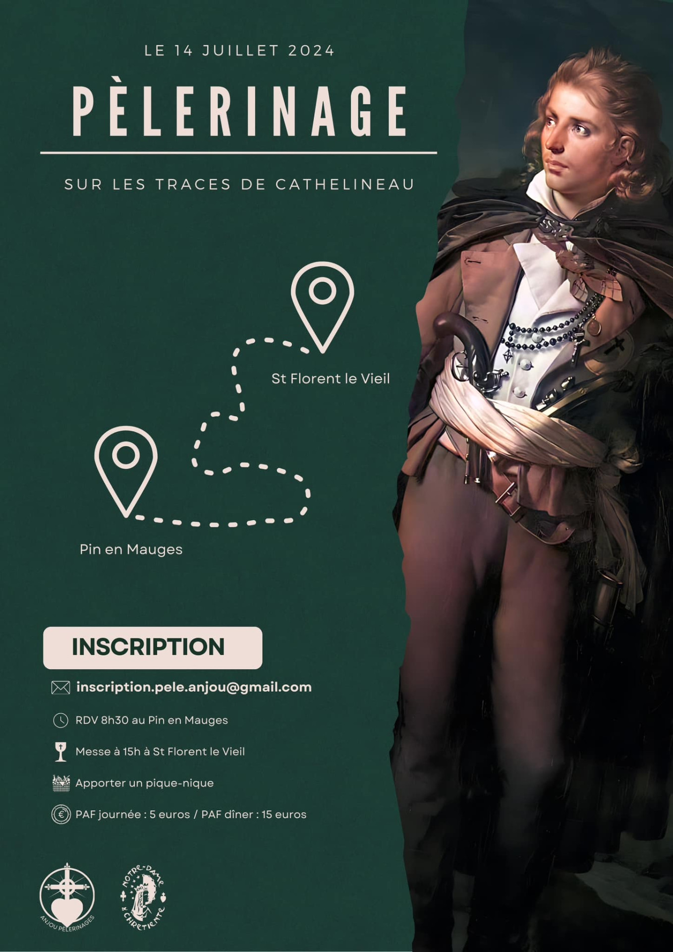 L’Association Anjou Pèlerinages, en lien avec la région Ouest de Notre-Dame de Chrétienté, organise pour la 7ème année consécutive un pèlerinage « Sur les traces de Jacques Cathelineau… » qui se déroulera en Anjou le dimanche 14 juillet 2024 du Pin-en-Mauges à Saint-Florent-le-Vieil.