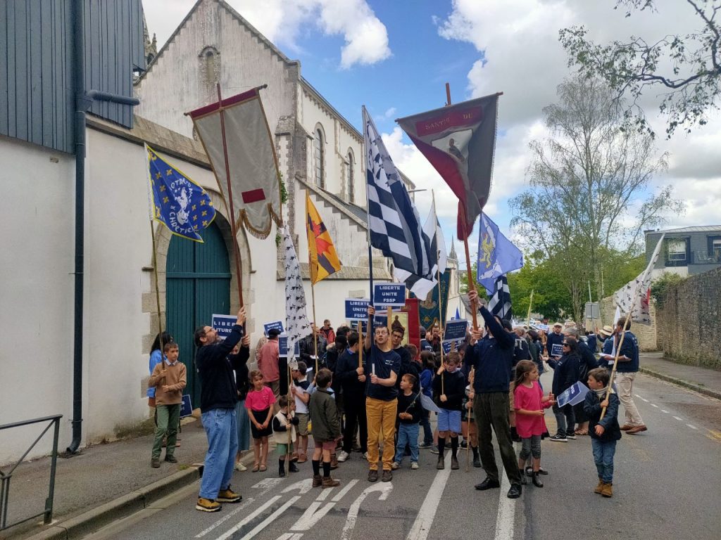 « Plus de 300 fidèles catholiques se sont rassemblés dimanche 5 mai devant l’évêché pour demander le rétablissement de la convention signée entre l’Evêque de Quimper et la Fraternité Saint Pierre.