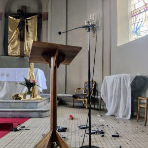Une messe de réparation a été célébrée mardi 7 mai, à 9h00, par le père Bertrand Collignon, délégué de l’administrateur diocésain, P. Eugène Doussal.