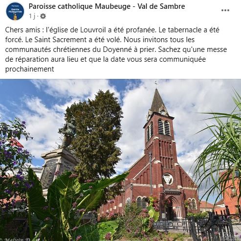 A Louvroil une messe de réparation sera célébrée le 8 mai à 18h. La paroisse de Maubeuge a communiqué sur le sujet et appelé les fidèles à prier.