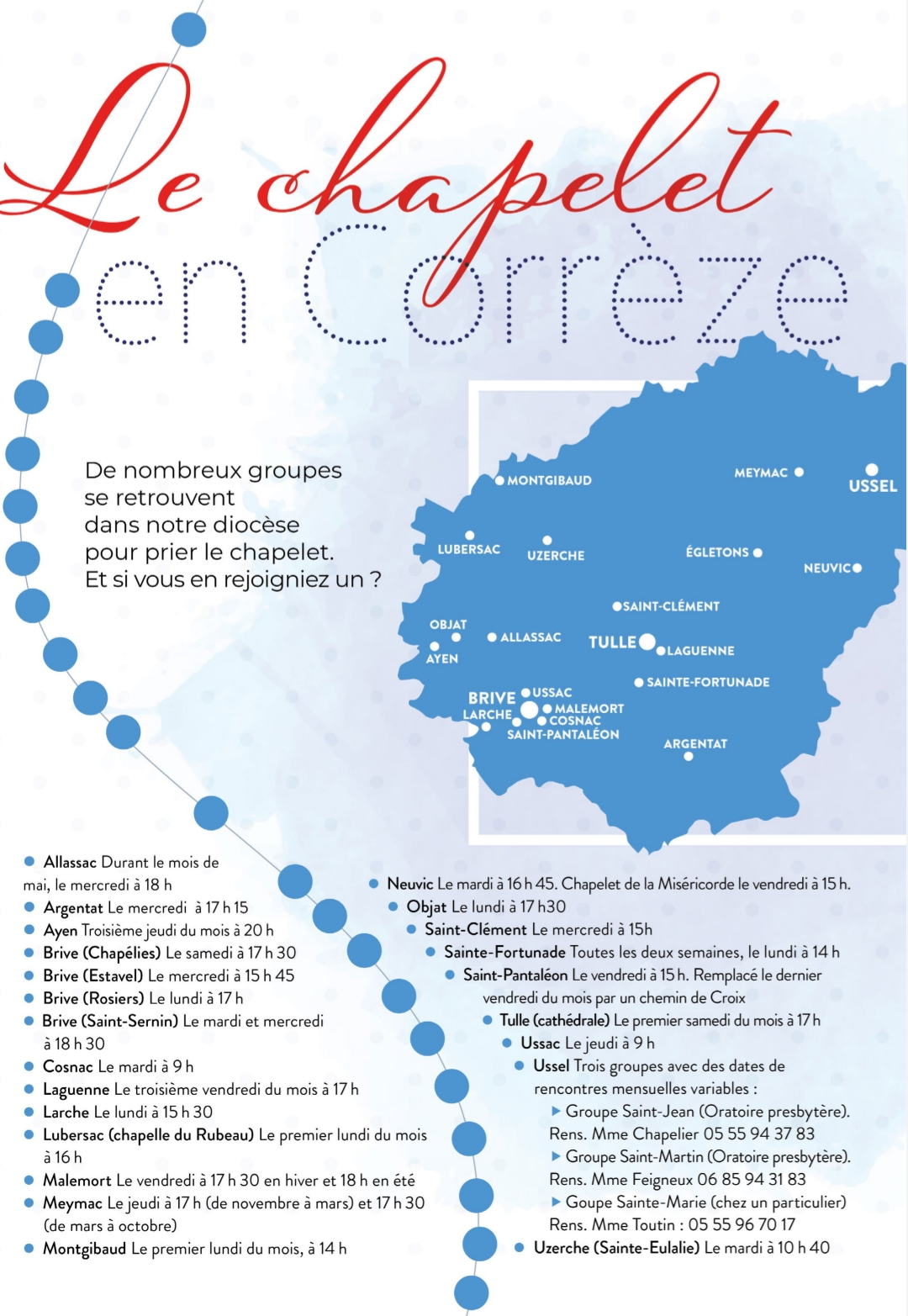 Accueil » Nos archives » Prier le chapelet en Corrèze En Une Prier le chapelet en Corrèze Le journal diocésain de Tulle présente les lieux où le chapelet est prié en Corrèze : Article précédentFête de fin d'année du Cours Saint-Joseph (Saintes) le 29 juin Article suivantParcours d'été avec Claves 26 juin 2024
