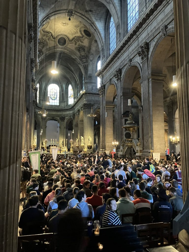 La messe d’envoi du Pèlerinage de Chartres a été célébrée ce matin à l’église Saint-Sulpice. Les pèlerins sont partis aux environs de 8h30 du parvis de la place Saint-Sulpice.