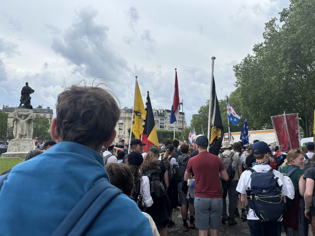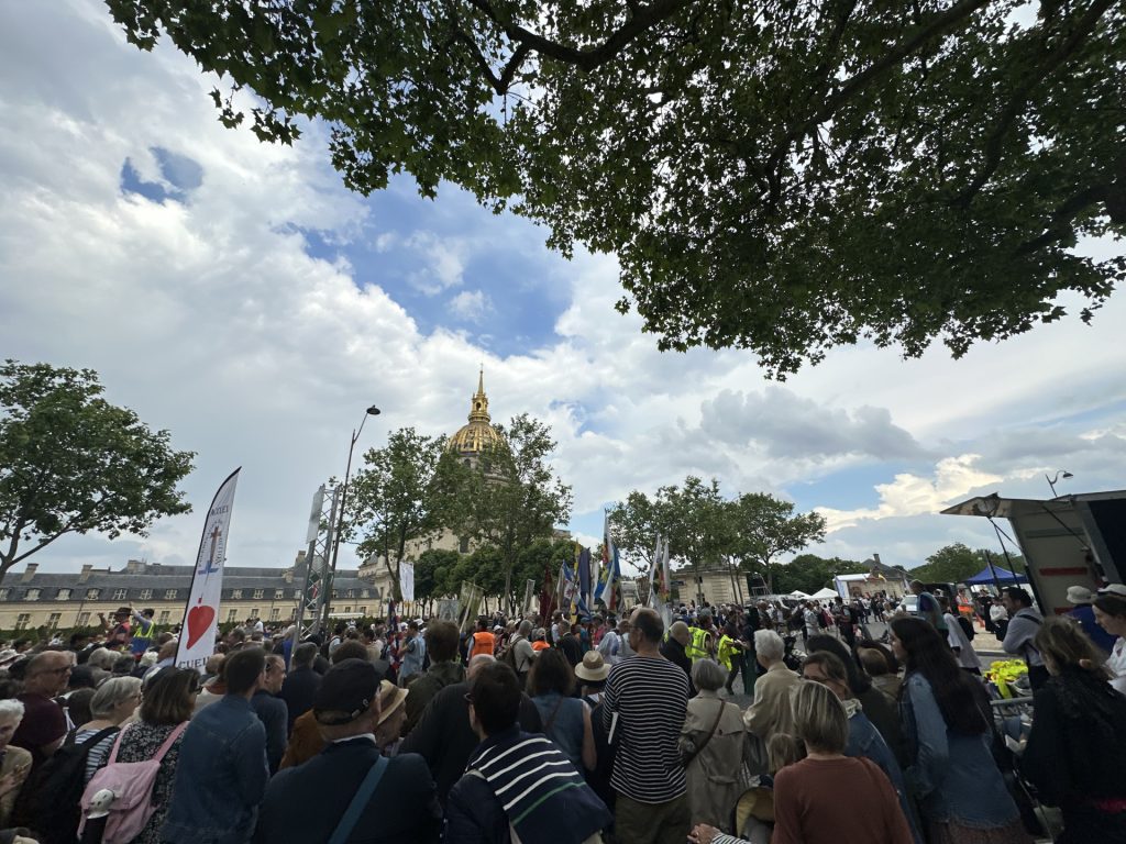 Les pèlerins du Pèlerinage de Tradition qui fait Chartres Paris sont arrivés Place Vauban (7ème arrondissement de la capitale). Les chapitres étrangers sont arrivés et la messe sera célébrée par l’abbé de Jorna.