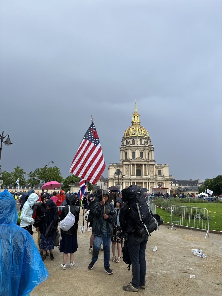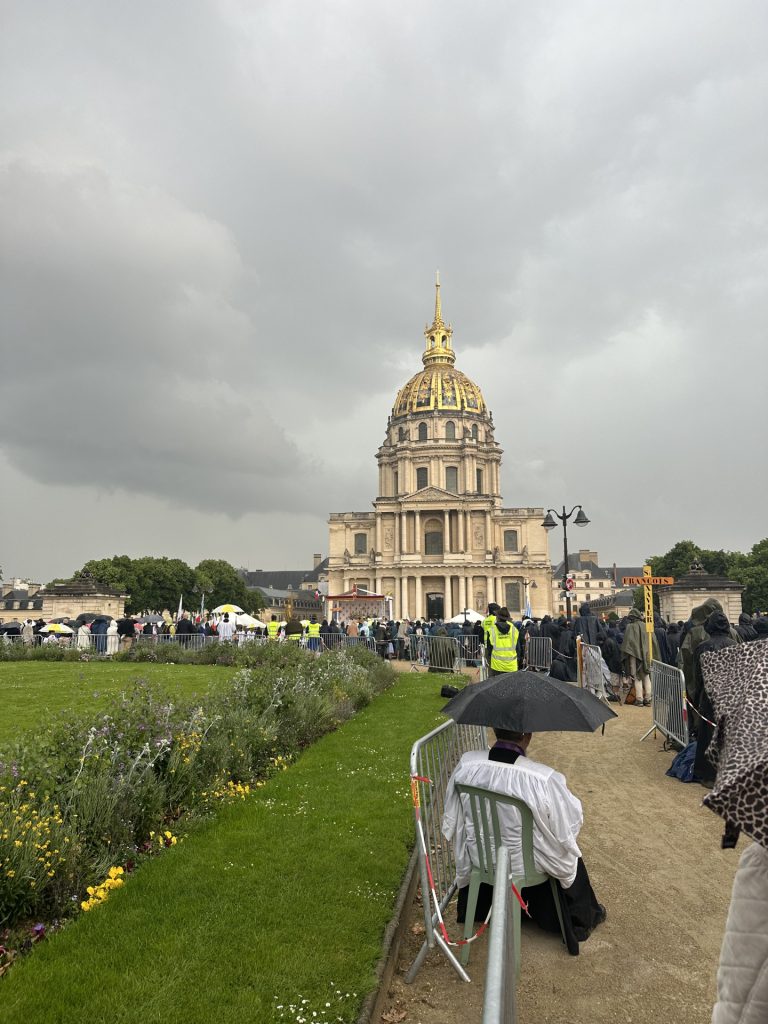 La messe de clôture du Pèlerinage de Tradition qui a eu lieu sur la Place Vauban à Paris a notamment eu lieu sous un temps pluvieux. L’abbé de Jorna a prêché en rappelant saint Thomas d’Aquin, qui était venu à Paris à une époque où existaient déjà des controverses.