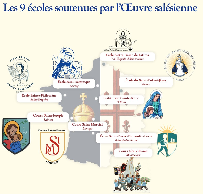 Aussi la Providence nous permet, à notre petite place, de contribuer à cette mission de l’Église, en soutenant neuf écoles en France, qui ont pour objectif d’être des écoles catholiques « de fond en comble et à tout instant », où l’on enseigne « le goût et le respect de la vérité ». Les écoles sont l’avenir de la France chrétienne parce qu’en elles se trouvent les futurs foyers chrétiens et les germes de vocations sacerdotales et religieuses. Les soutenir c’est soutenir l’Église, y travailler, c’est participer au grand chantier de la Rédemption auprès de notre Maître adorable.