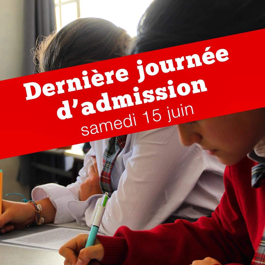 La dernière journée d’admission pour l’année scolaire 2024-2025 aura lieu le samedi 15 juin :