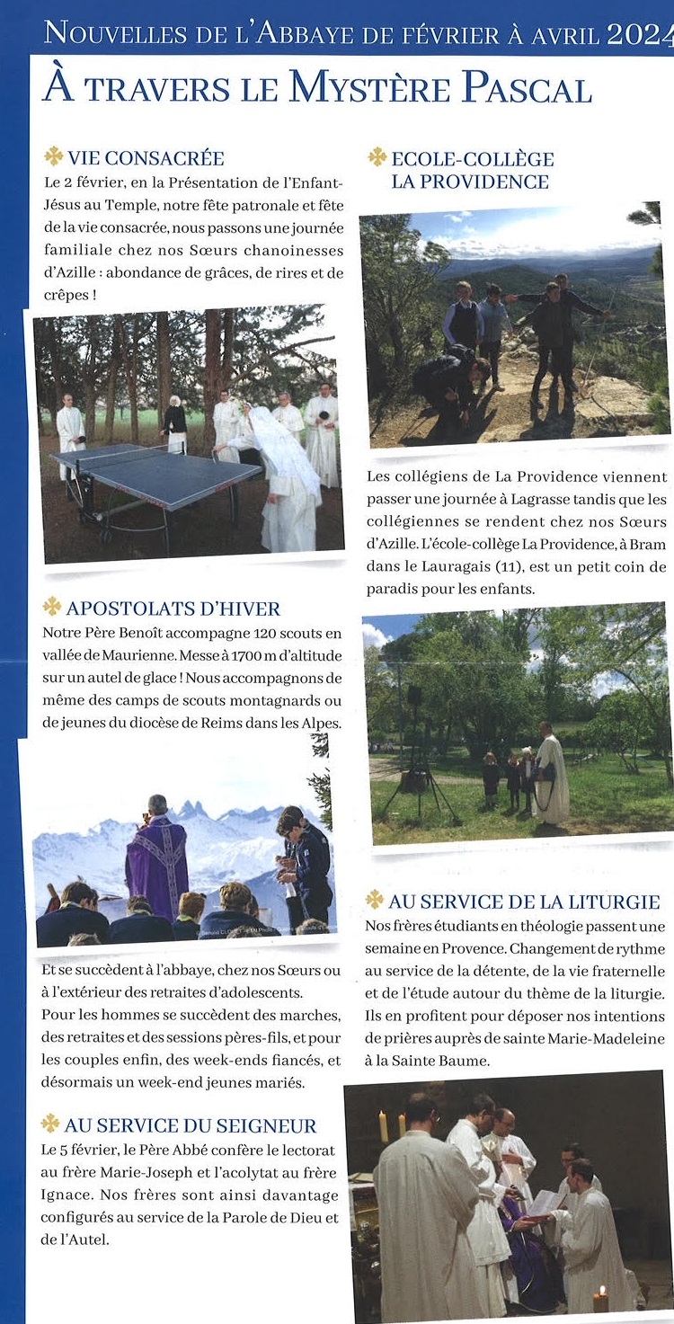 La lettre donne également des nouvelles de la vie de l’Abbaye et de ses apostolats :