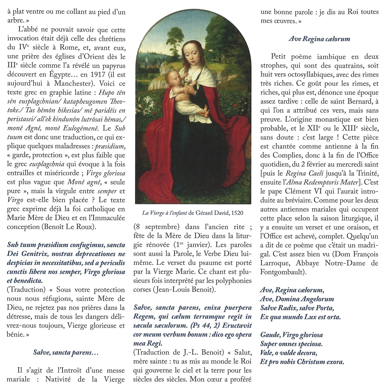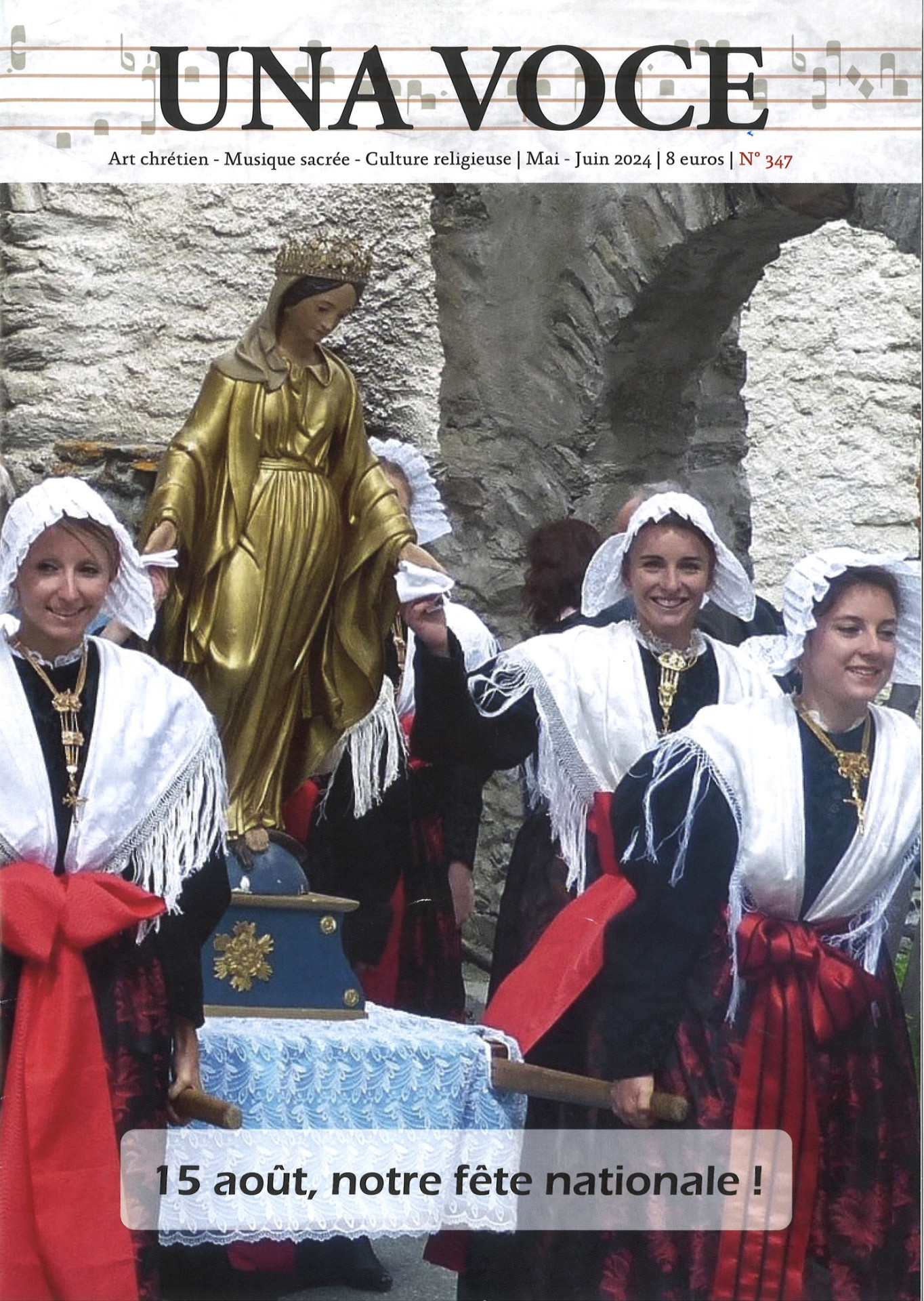 Quand cette revue vous parviendra, amis lecteurs, ils seront déjà passés, à travers la Beauce, les immenses pèlerinages de Pentecôte qui témoignent de l’attachement de notre jeunesse à la liturgie latine et grégorienne. Nous avons donc souhaité placer ce numéro d’été sous le signe de la prochaine grande procession, celle de l’Assomption de la Vierge Marie. Ne manquons pas le 15 août ! Ce sera notre prochain pèlerinage à tous, si nous pouvons. C’est en effet une tradition u de la Roumanie au Paraguay r, dit Wikipedia (oubliant l’Afrique, l’Asie et l’Océanie), mais particulièrement en France oùr Louis XIII l’a confortée par son voeu de 1638. C’est vraiment notre fête nationale. Ce le fut officiellement sous le premier et le second Empire, Napoléon ayant eu l’habileté de placer la fête de son hypothétique saint patron ce jour-là. Et c’est toujours la fête nationale des catholiques français, comme le montreront les images de 1a télévision le soir même et celles de la presse le lendemain. Processionnons ! Prions et chantons Marie ! Tentons de maintenir un Salve Regina parmi les cantiques vernaculaires parfois mièvres.