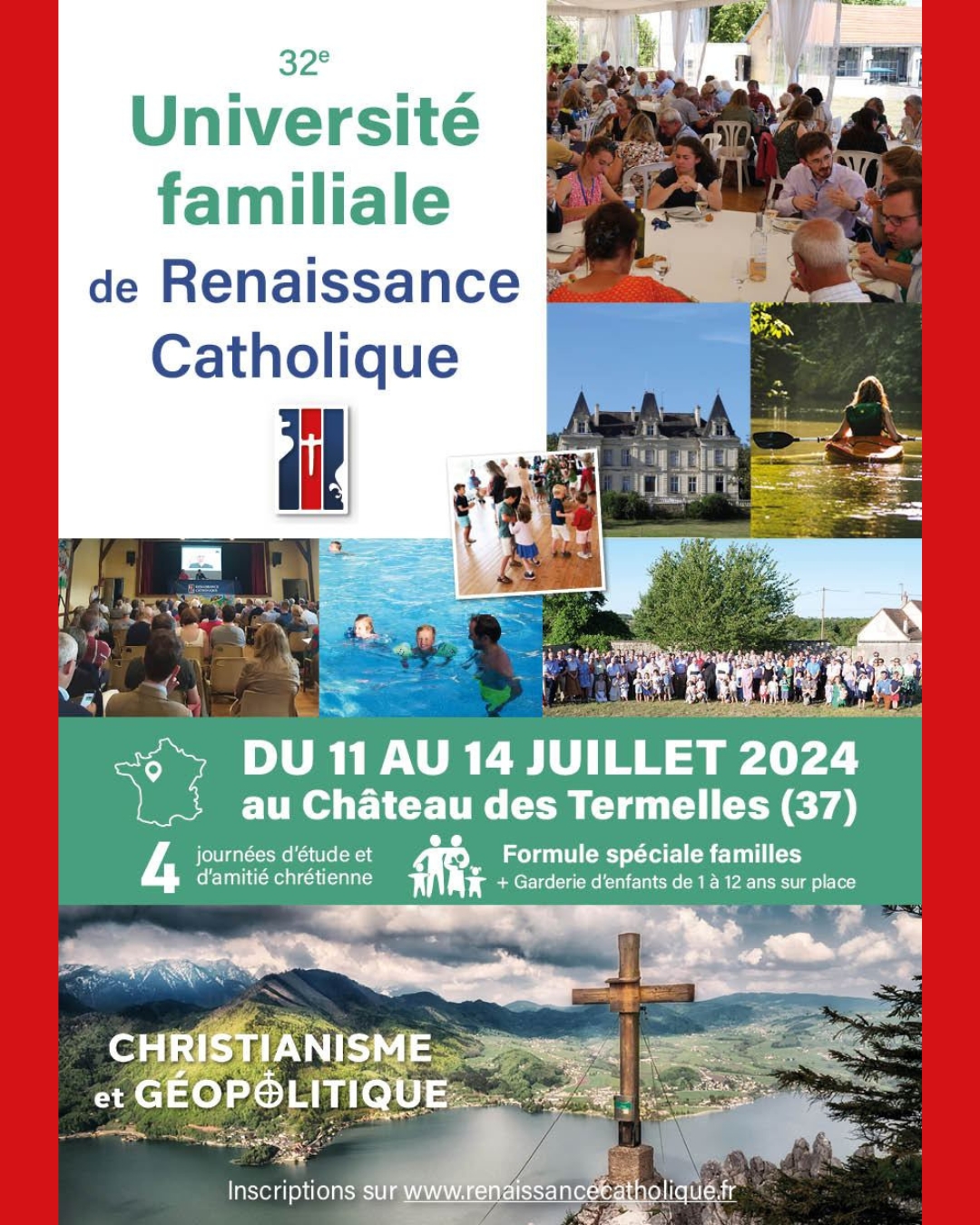 La 32ème université d’été de Renaissance Catholique se déroulera au Château des Termelles à Abilly (37) du 11 au 14 juillet 2024, sur le thème “Christianisme et géopolitique”. Il est temps de s’inscrire !