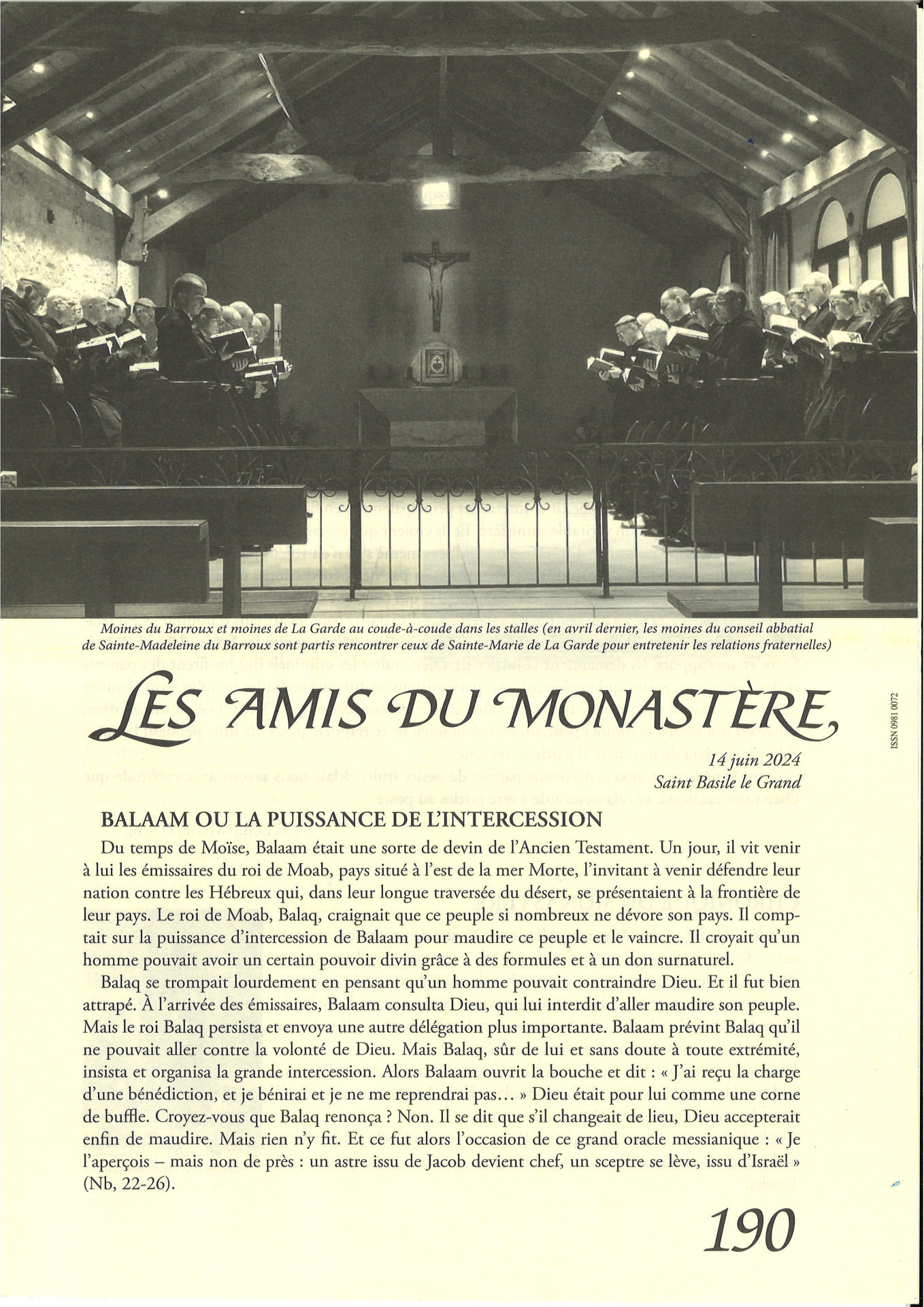 La dernière lettre Les Amis du Monastère Sainte Madeleine (n°189, 14 juin 2024) vient de paraître.