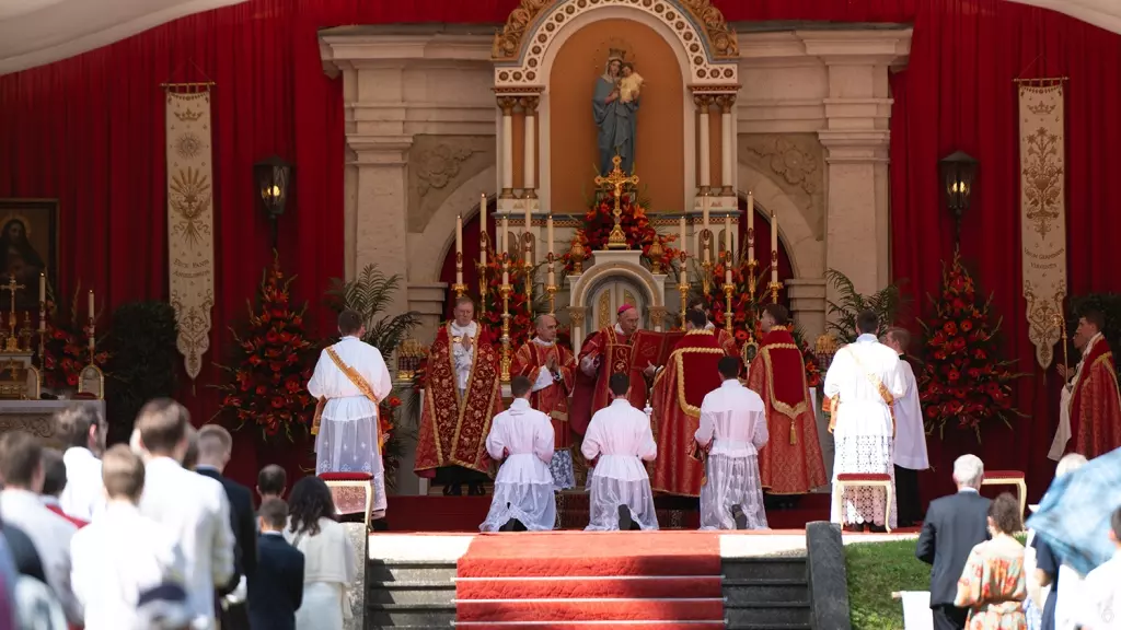 Ce samedi 29 juin, Mgr Bernard Tissier de Mallerais a ordonné 2 prêtres pour la Fraternité Saint-Pie X et 3 diacres, tous issus du Séminaire du Sacré-Coeur de Jésus de Zaitzkofen (Allemagne).
