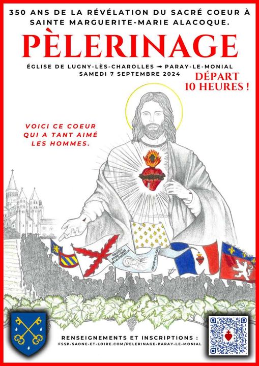 Le Séminaire Saint-Pierre (Wigratzbad, FSSP) organise comme chaque année son Pèlerinage de rentrée le samedi 7 septembre à Paray-le-Monial pour fêter les 350 ans des révélations su Sacré-Cœur à sainte Marguerite-Marie.