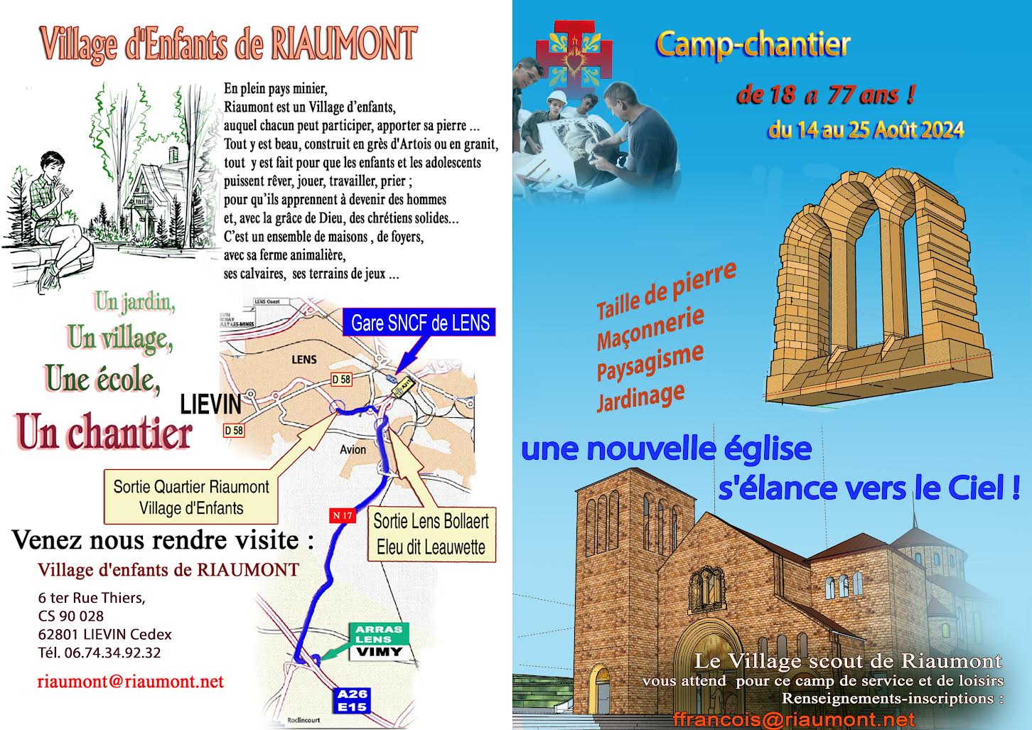 Accueil » Nos archives » Camp Chantier à Riaumont du 14 au 25 août 2024 Summorum Pontificum Camp Chantier à Riaumont du 14 au 25 août 2024 Les religieux de Riaumont (Liévin 62) proposent un camp chantier pour tous de 18 à 77 ans (possibilité de venir en famille) du 14 au 25 août : prière, travail et détente. Riaumont Article précédentBrève : Messe traditionnelle à Guérande cet été Article suivantFonds SELAM : le diocèse d'Orléans repasse à la caisse en 2023 11 juillet 2024