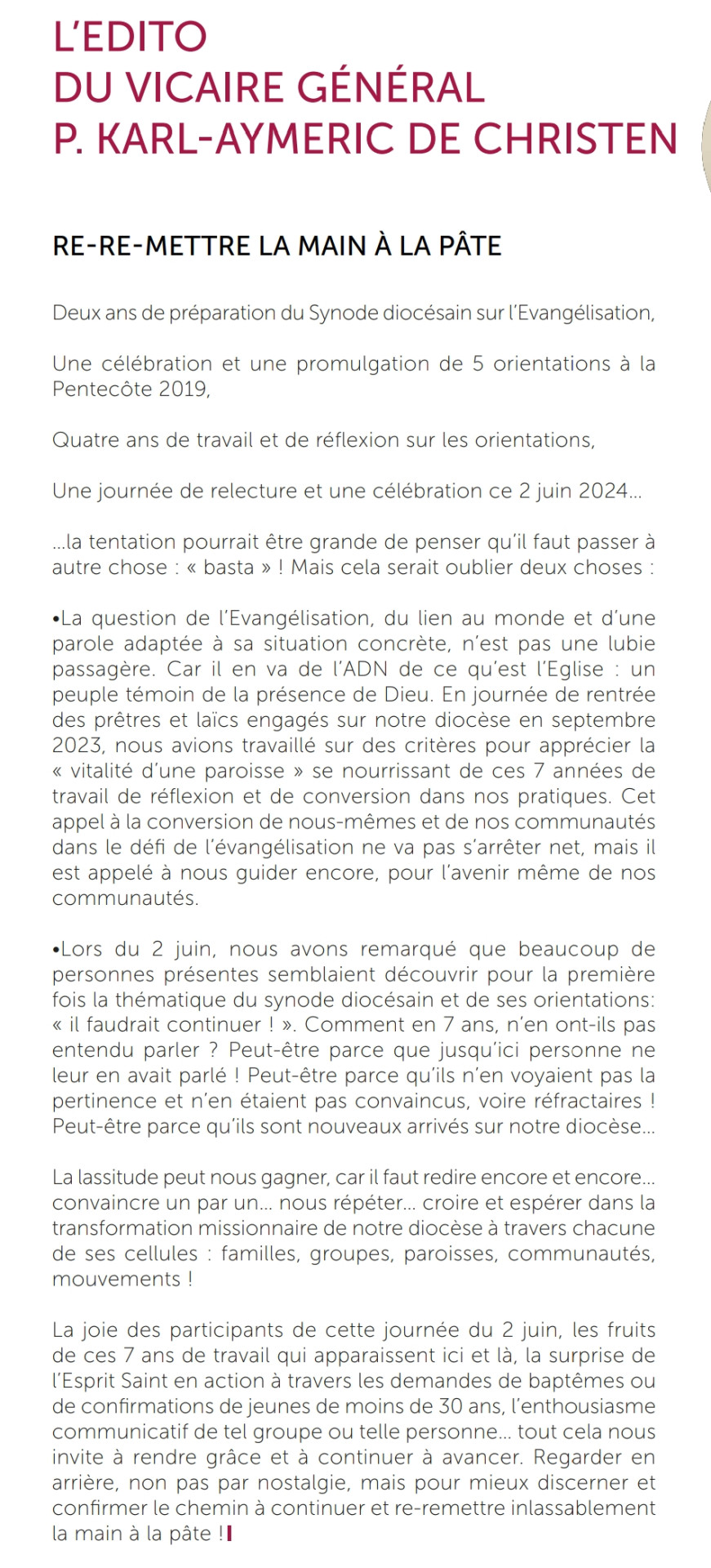 Le vicaire général du diocèse d’Orléans Karl-Aymeric de Christen s’étonne dans l’éditorial du journal diocesain que sept ans après le début du synode diocésain, des fidèles n’en aient jamais entendu parler.
