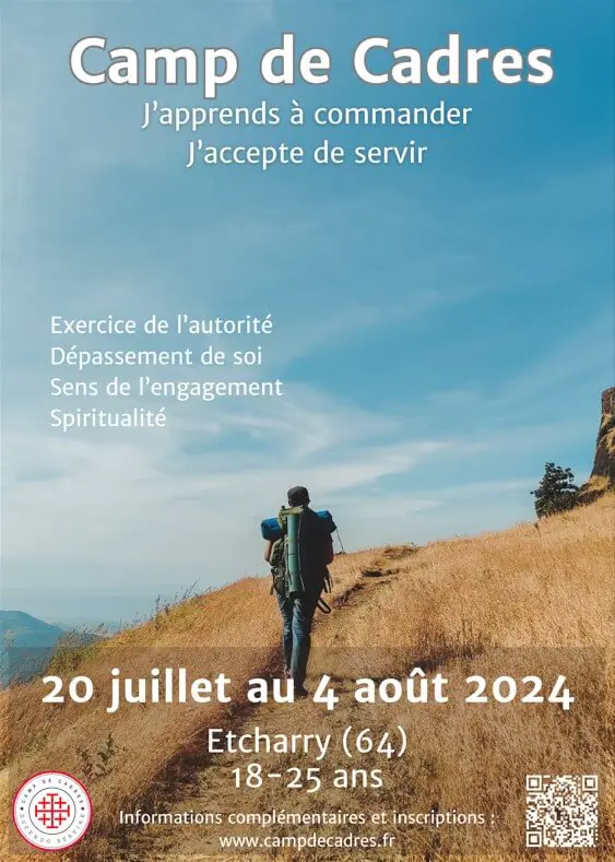 Le prochain Camp de Cadres pour les 18 à 25 ans aura lieu du 20 juillet au 4 août à Echarry (64). L’aumônerie sera assurée par des prêtres de la Fraternité Saint-Pie X.