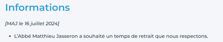 Le père Tiktok – qui a arrêté les réseaux sociaux en décembre dernier, alors que son évêque Mgr Giraud était sur le départ pour Viviers où il a été installé mi-avril, a annoncé prendre un « temps de retrait ». Il s’était fait connaître par de nombreuses affirmations scandaleuses, vidéos blasphématoires, volonté de réécrire le catéchisme dans le sens du diktat LGBT, justifications des dérives LGBT etc. le tout soutenu par le silence de son évêque, à part une légère mise au point de la CEF et de son évêque, une fois. Des fidèles avaient même fait un site pour répondre à ses erreurs et rétablir la vérité du magistère – il a été mis hors ligne lorsqu’il a arrêté les réseaux sociaux.